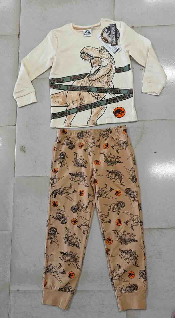 Style Description: Boys Printed Pyjama Sets. Long Sleeve Printed T-Shirt. Rib Sleeve Cuff. Elastic Waist Printed Pant.