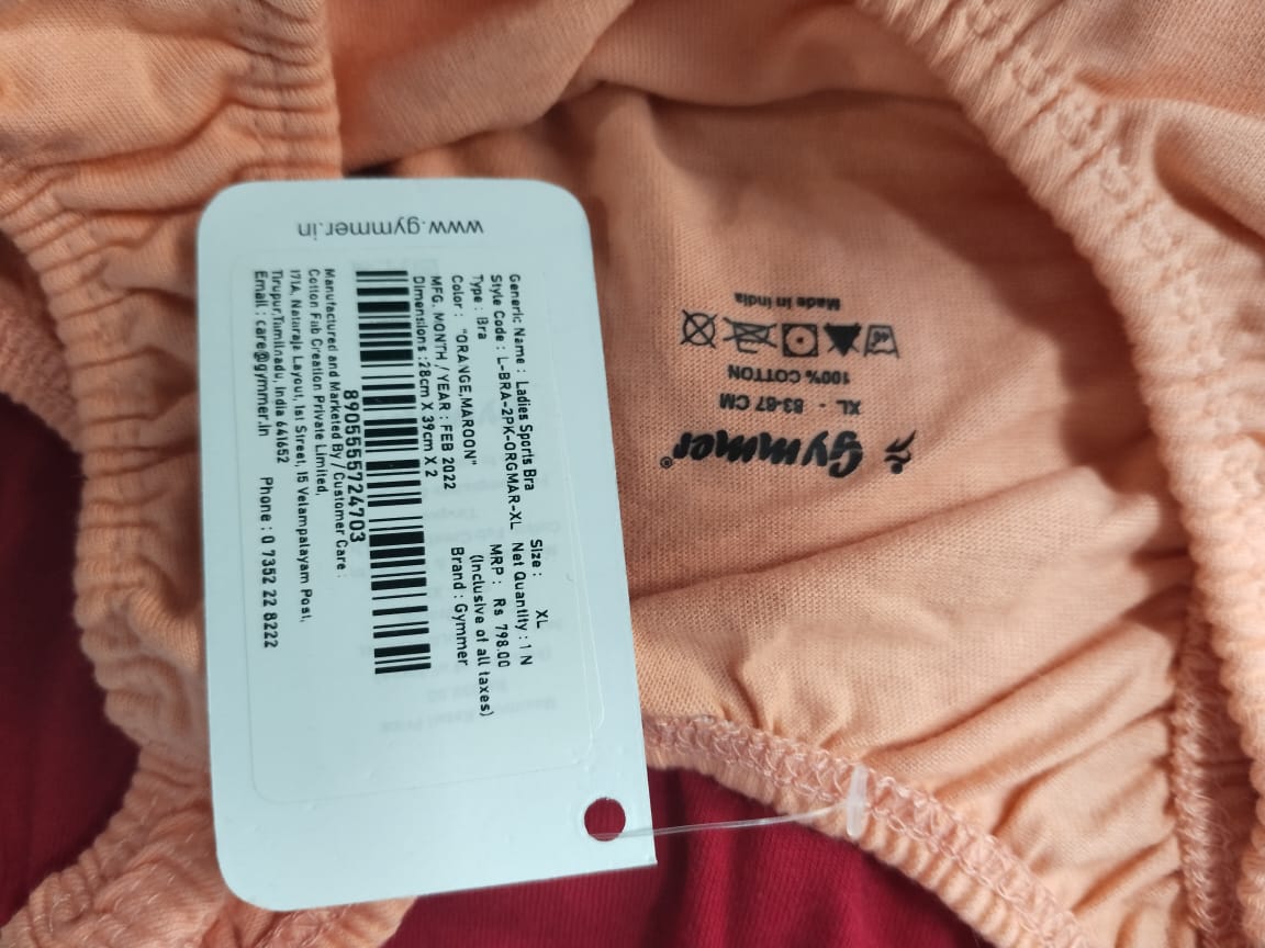 Gymmer Branded Ladies Sports Bra packed stock