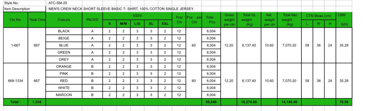 Fabrics: 100% cotton Gsm: 155/165