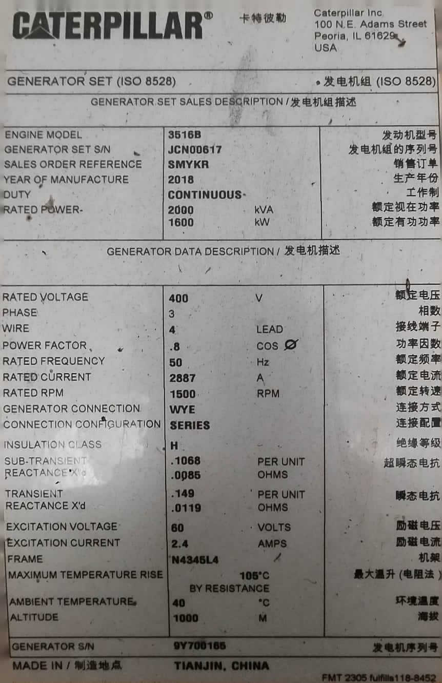3516B caterpillar Diesel generator