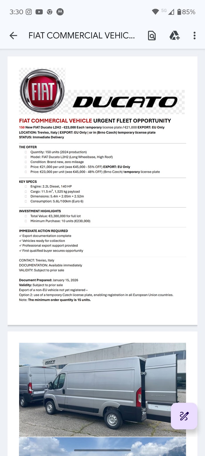 Price take all: 20 000 EUR pcs. if cars exported out of Europe