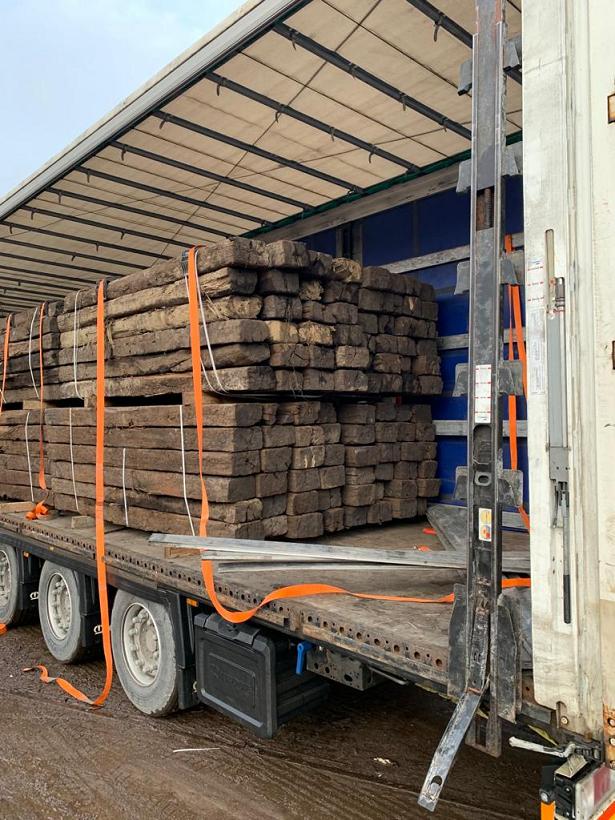 Used wooden railway sleepers for disposal