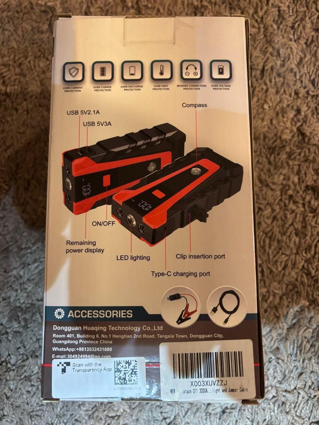 Portable Jump Box with 3 Modes Flashlight and Jumper Cable