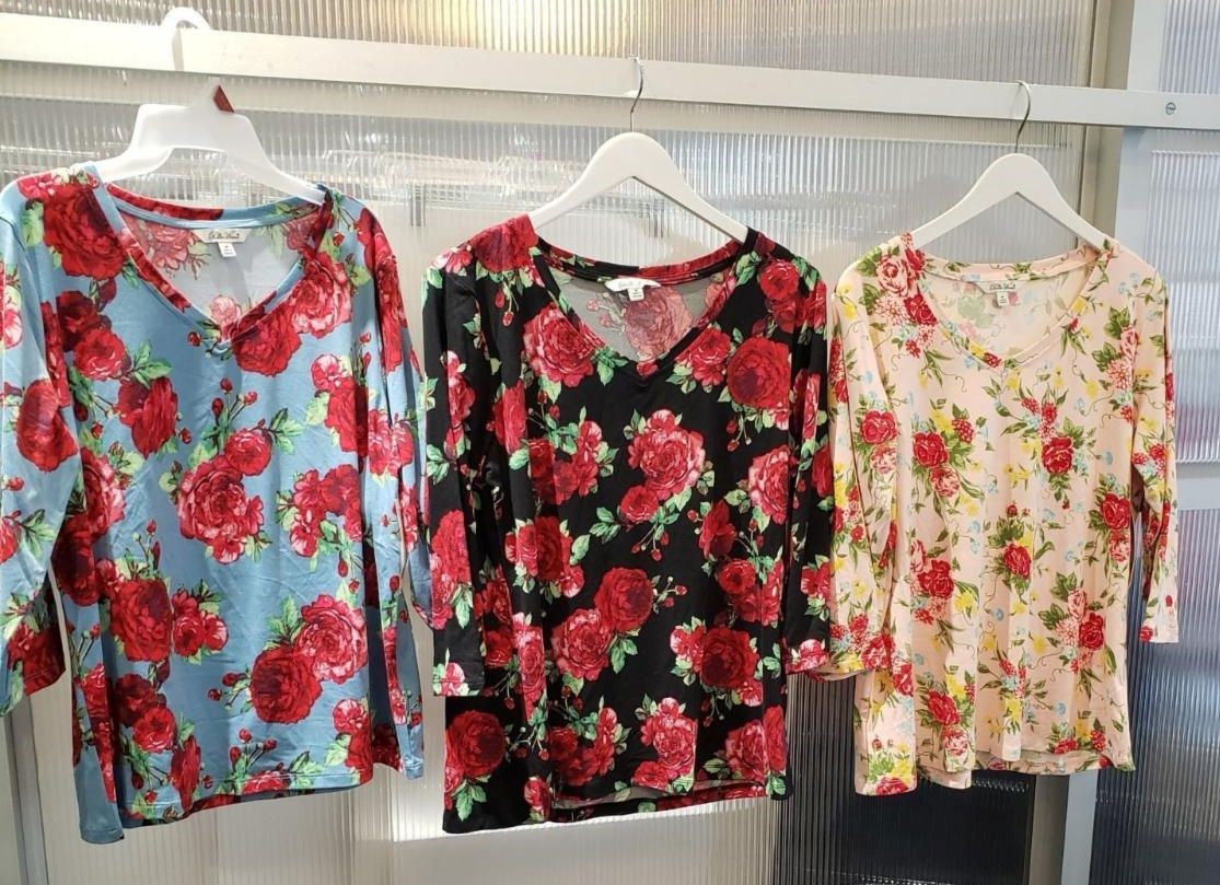MISSY PW KNIT FLOWER PRINTED LONG SLEEVE TOPS
