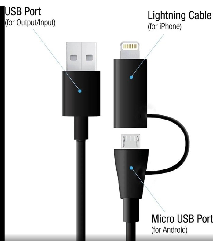 External Battery Pack with 2-in-1 MFI Lightning Cable 8Pin and MicroUSB Cable