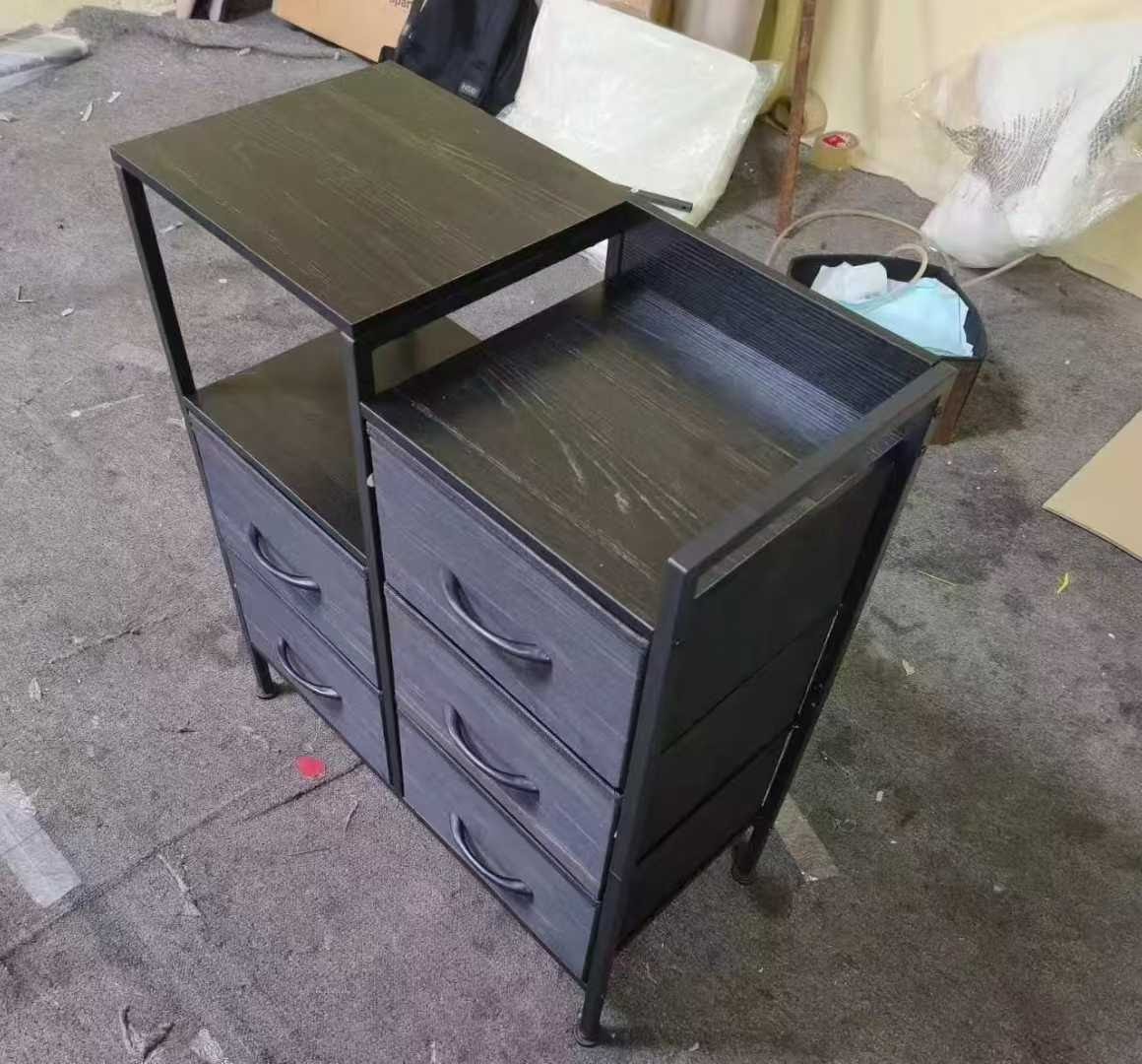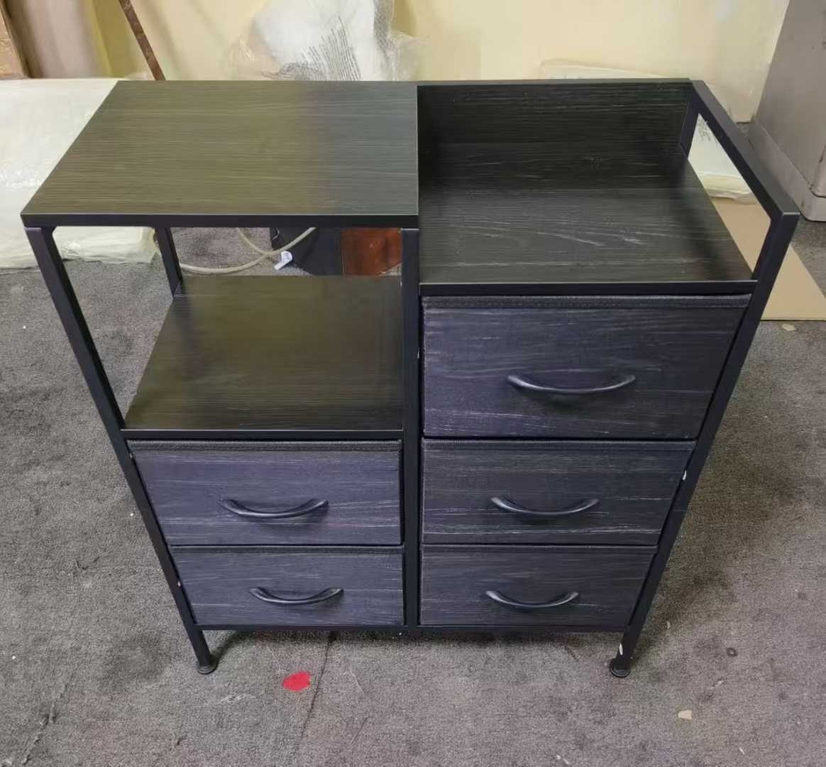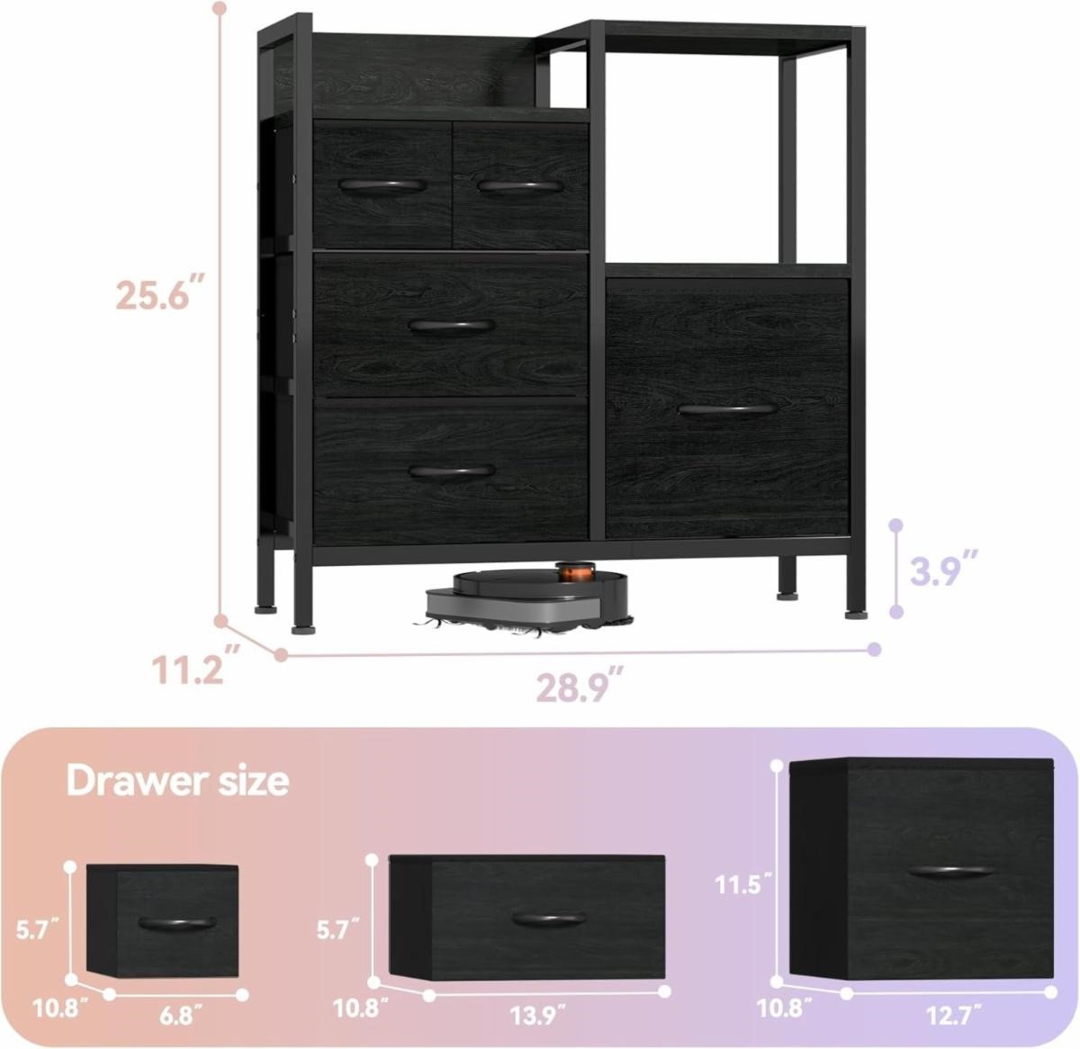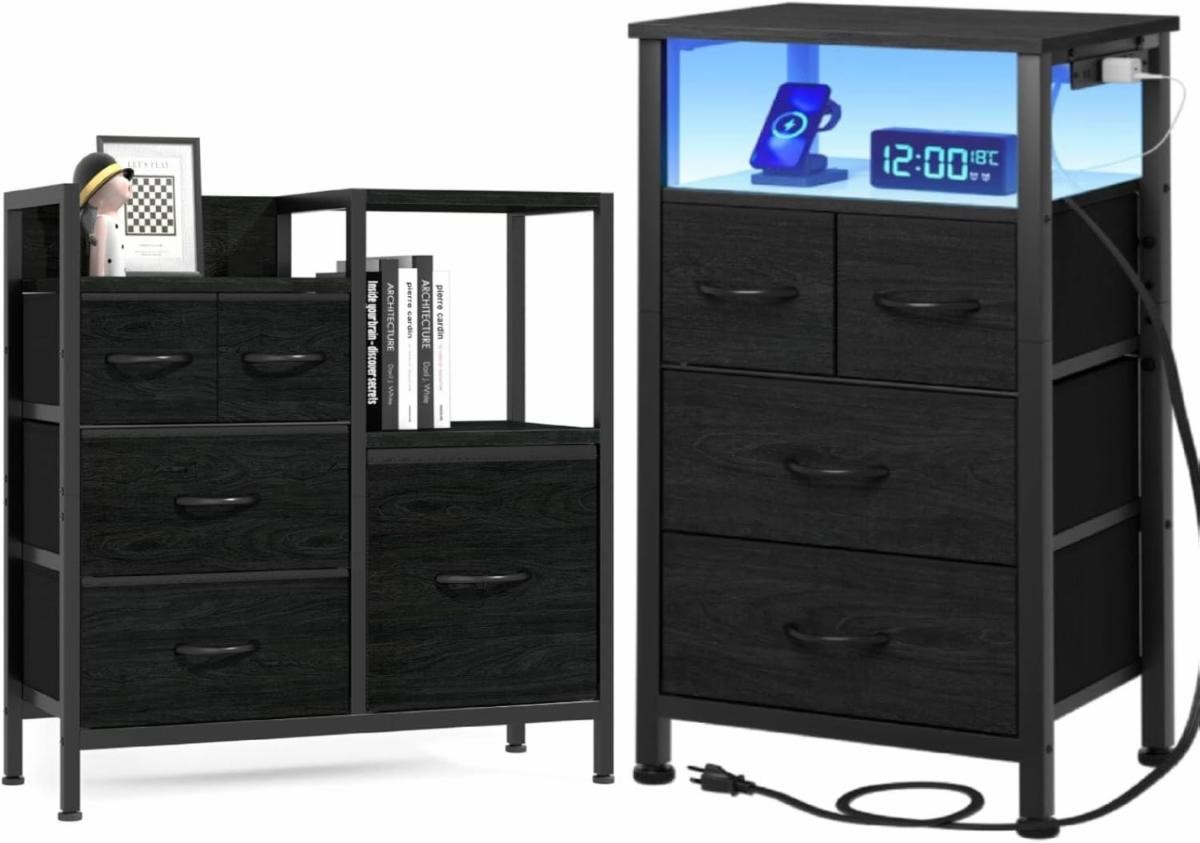 Furnulem Black Oak Chest of Drawers + Tall Nightstand with Charging Station