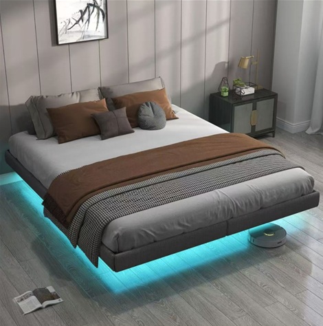 King Size Metal Bed Frame with LED Floating Light