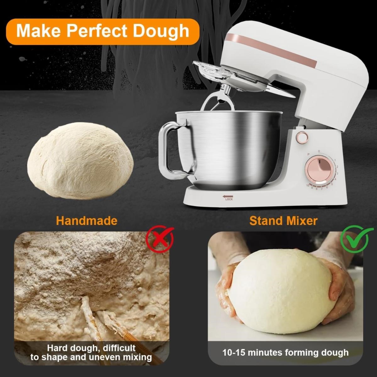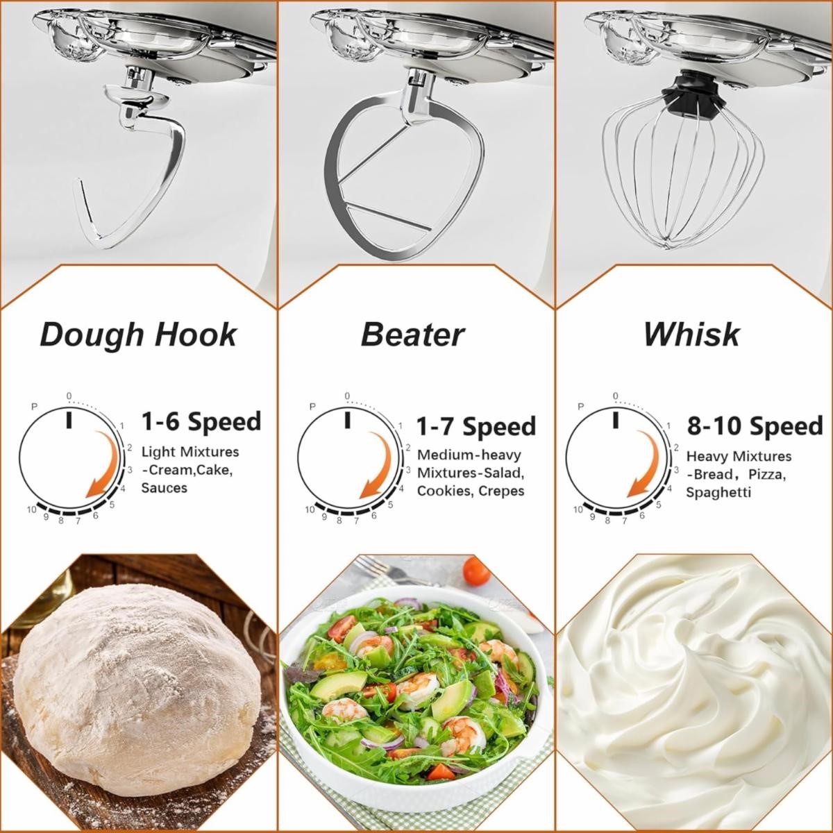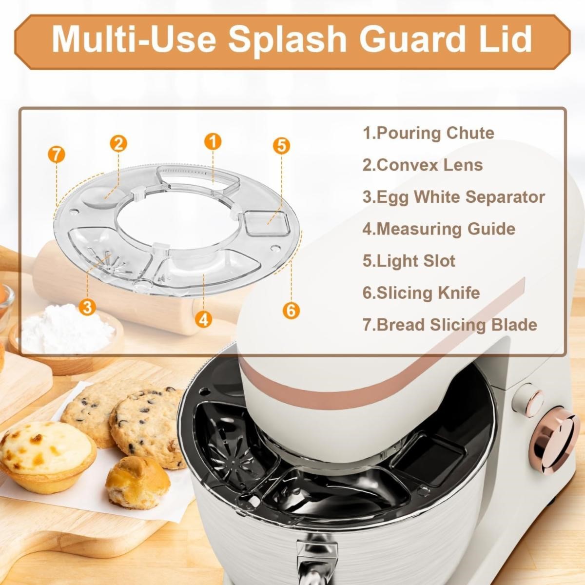 Whisk, Beater & Splash Guard, Electric Kitchen Mixer for Baking