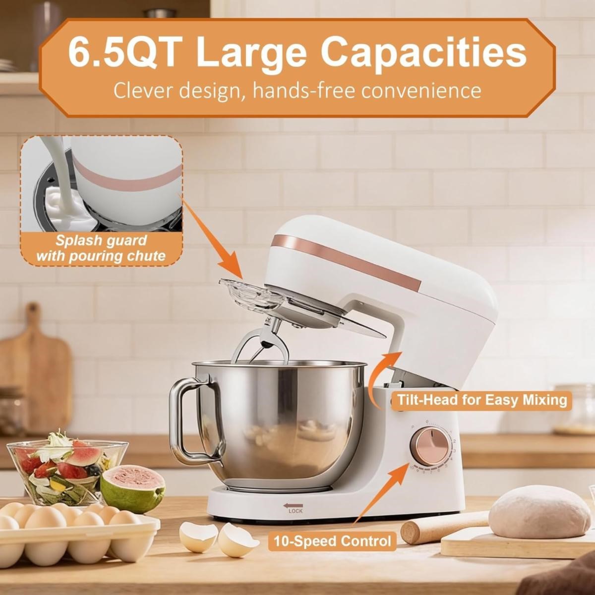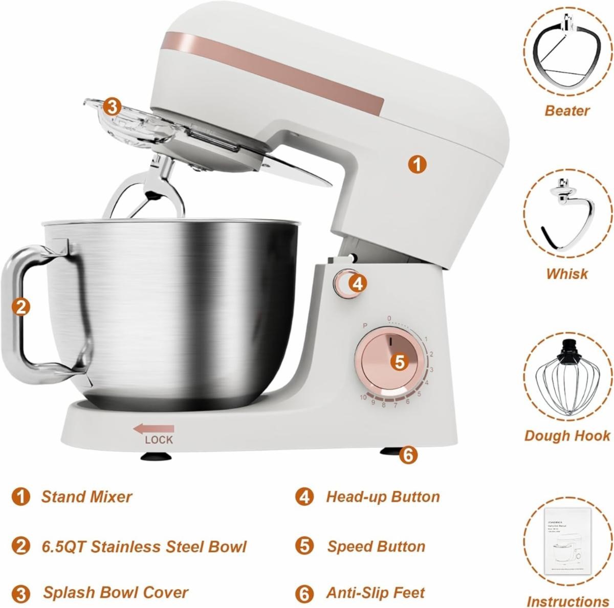 Bluebow 6.5Qt 10-Speed Tilt-Head Stand Mixer with Dough Hook
