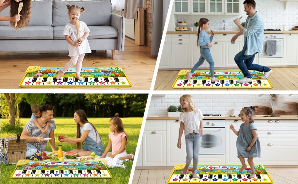 Keyboard Mat Carpet Touch Playmat with 10 Demo Songs / 8 Dinosaur Sounds