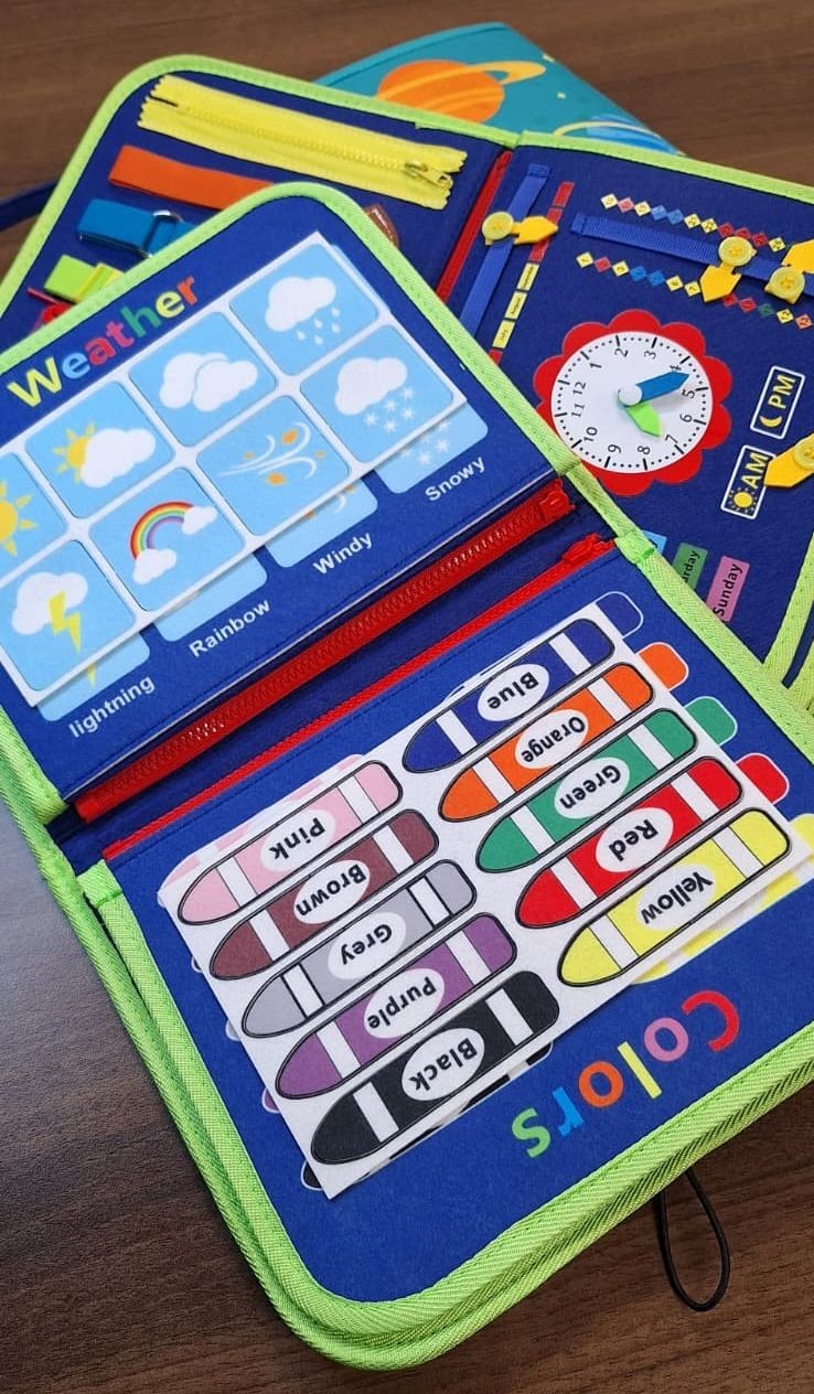 Montessori board has 5 pages in 7 themes and feature 26 montessori toddler activities, Include Life Skills, Alphabet, Numbers, Weather, Animals, Colors, Dress Skills